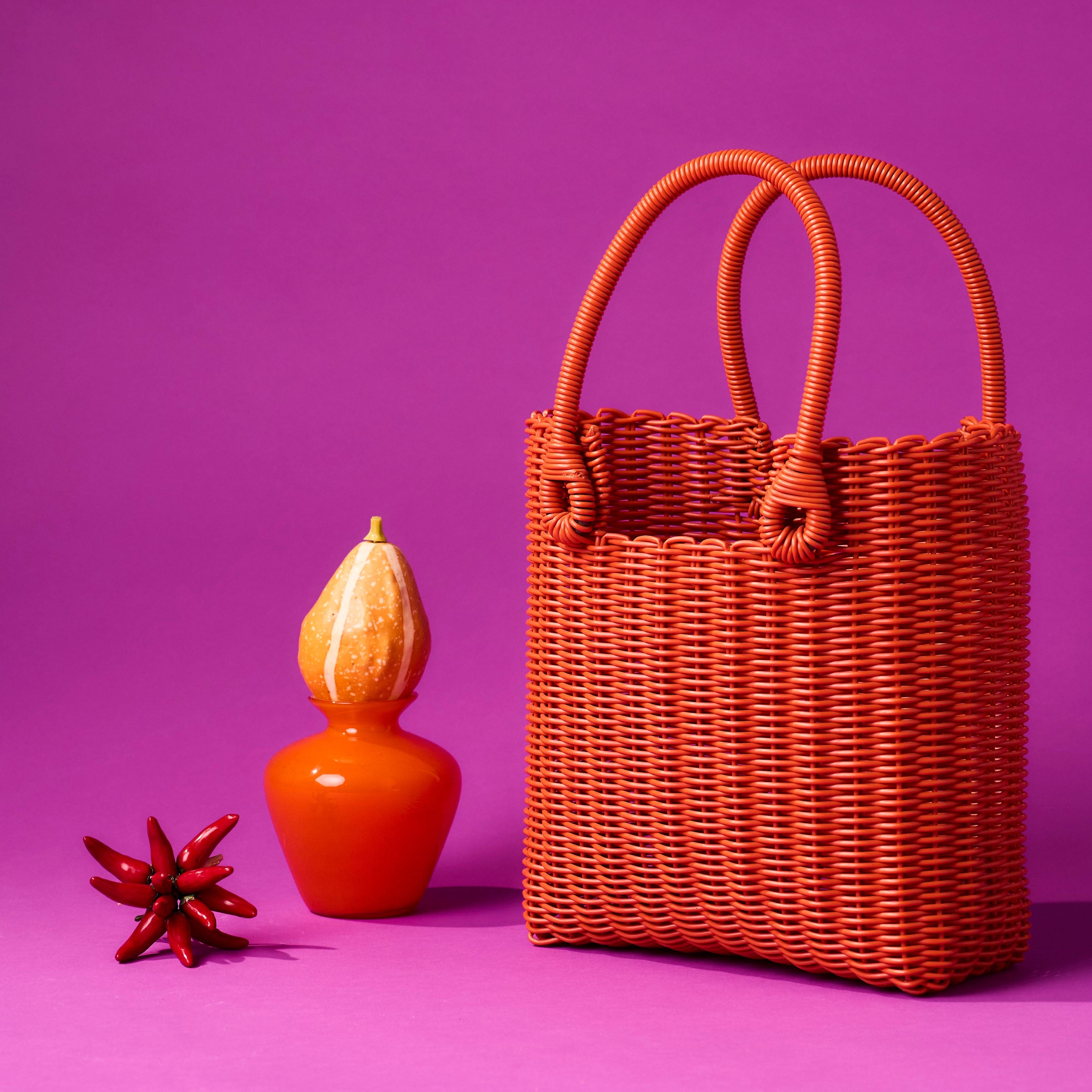 Each Mira bag is individually handwoven in a remote village in Java from new plastic tubing made from recycled PET plastics.