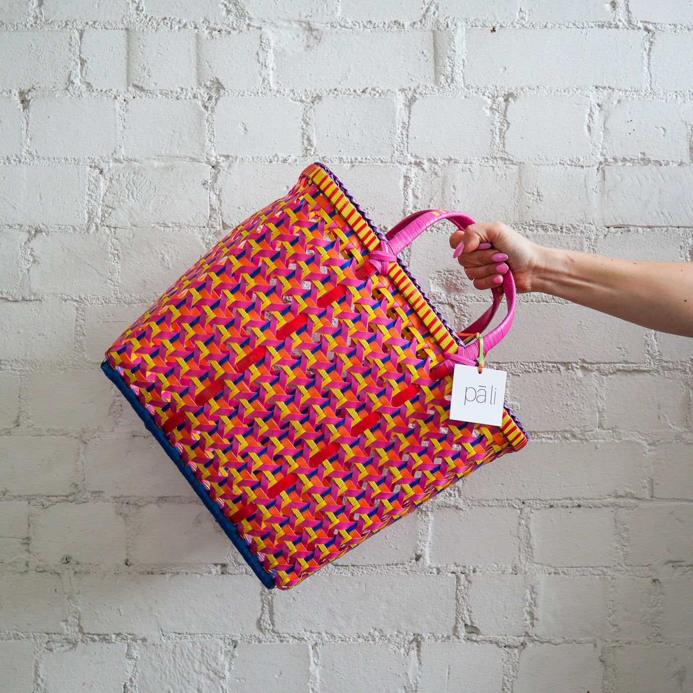 Gorgeous vibrant coloured baskets ethically handmade in Myanmar. Perfect for market shopping, flowers, the beach or work.