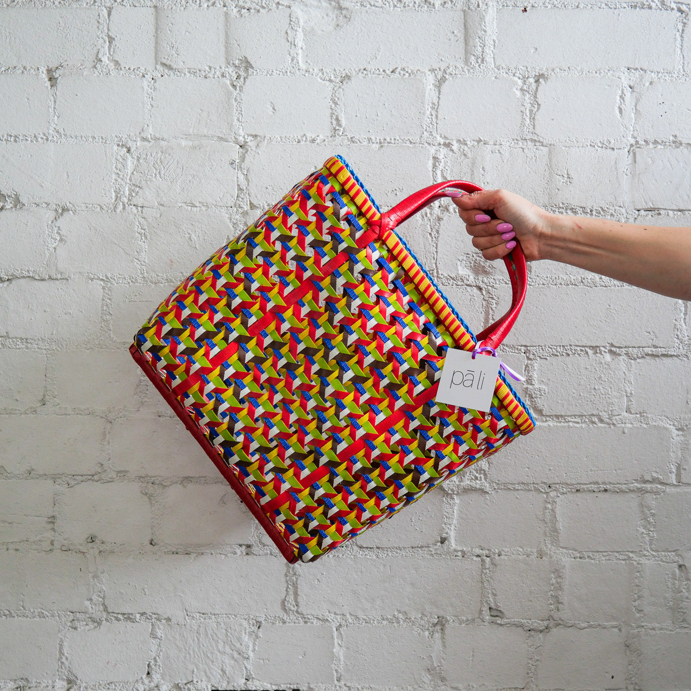 Gorgeous vibrant coloured baskets ethically handmade in Myanmar. Perfect for market shopping, flowers, the beach or work.
