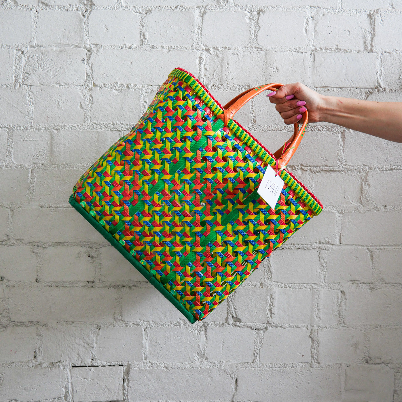 Gorgeous vibrant coloured baskets ethically handmade in Myanmar. Perfect for market shopping, flowers, the beach or work.