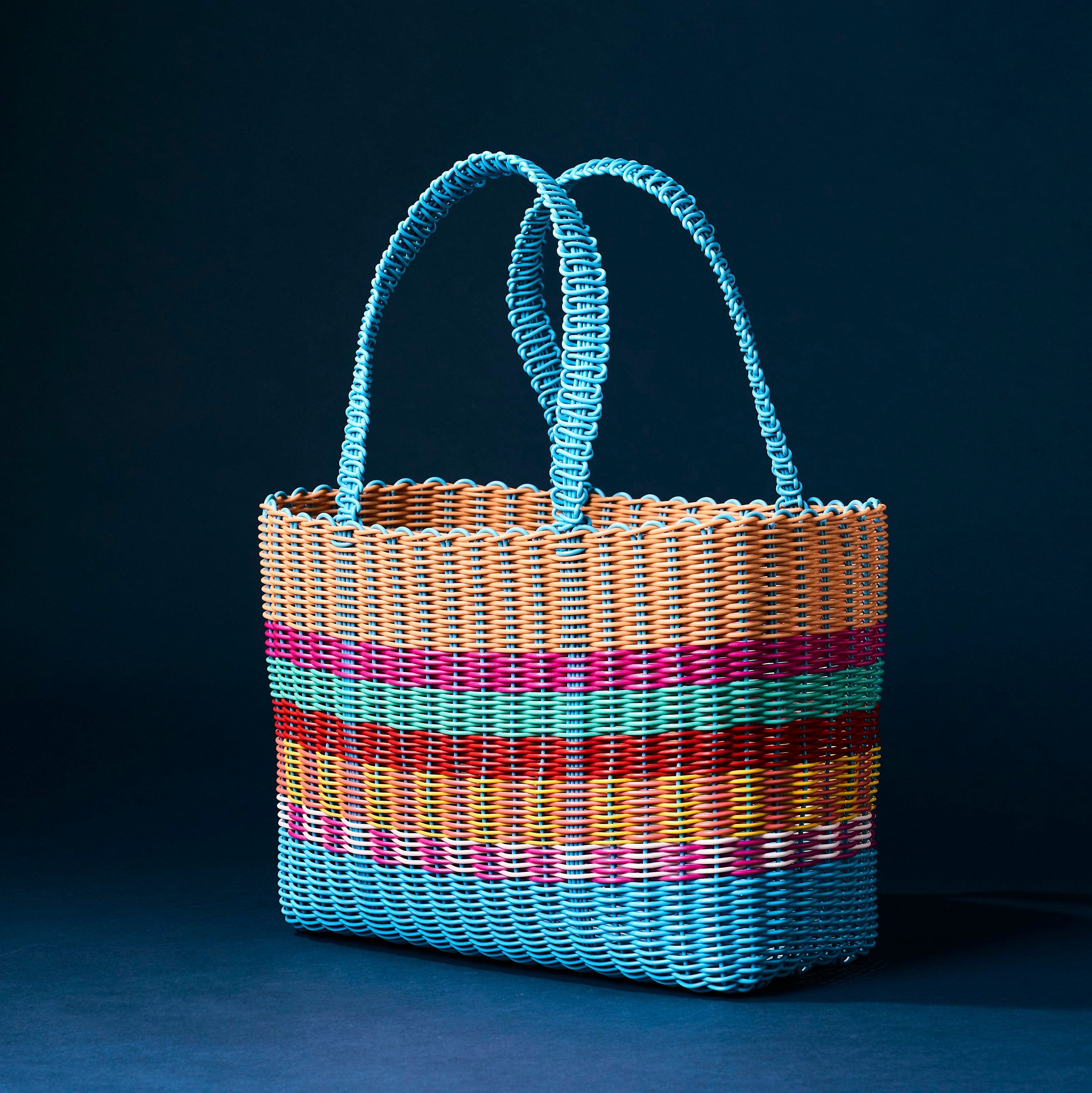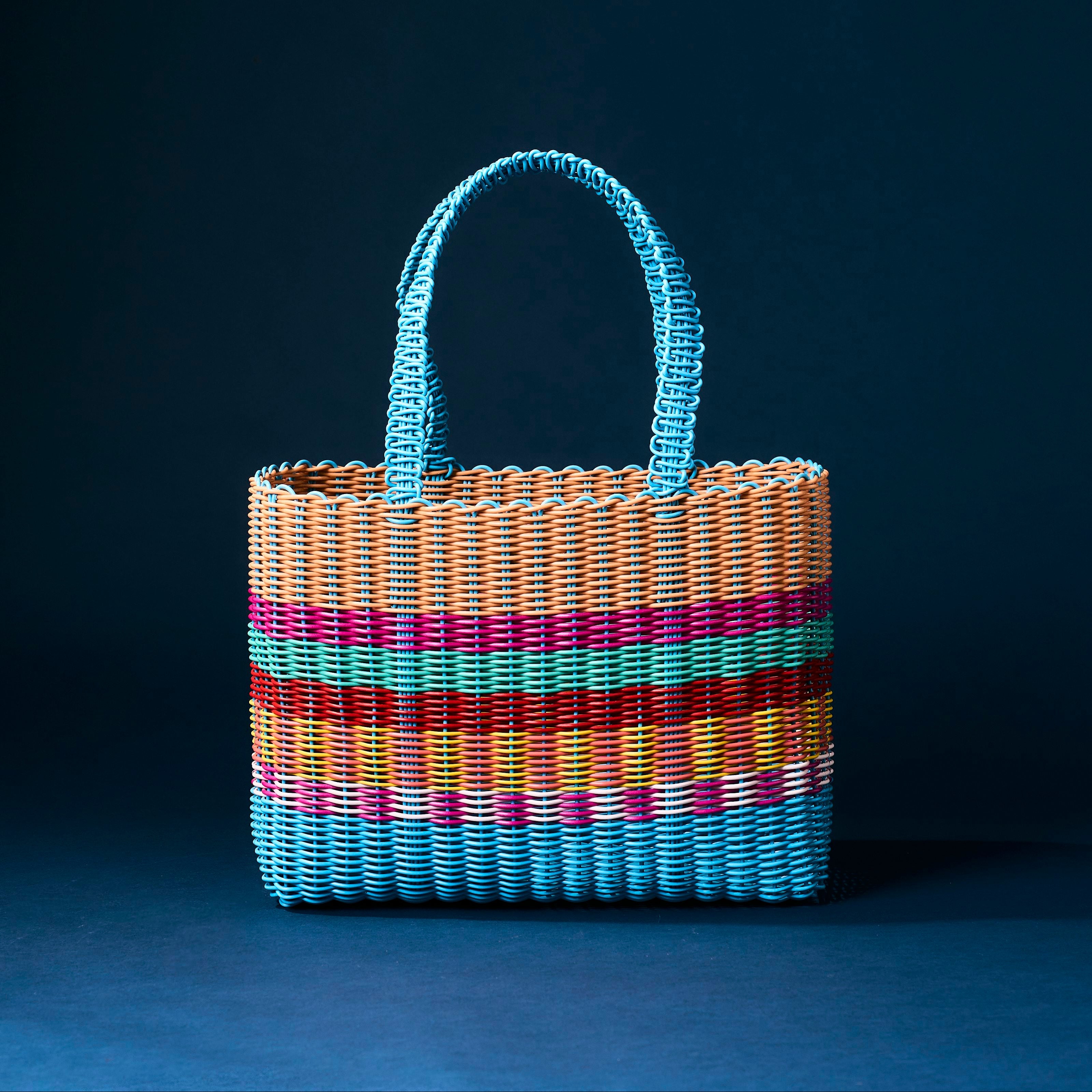 Each Mira bag is individually handwoven in a remote village in Java from new plastic tubing made from recycled PET plastics.
