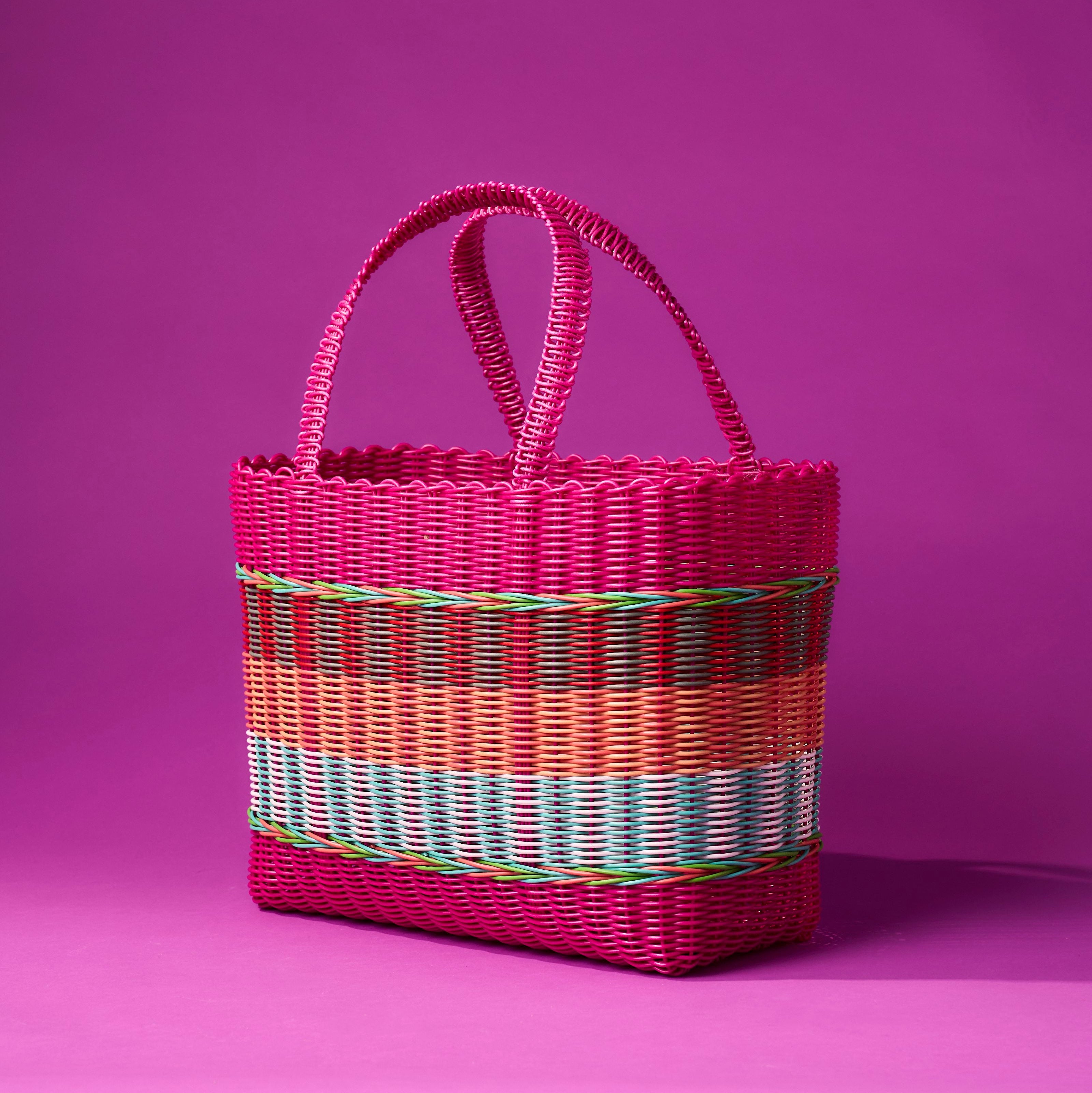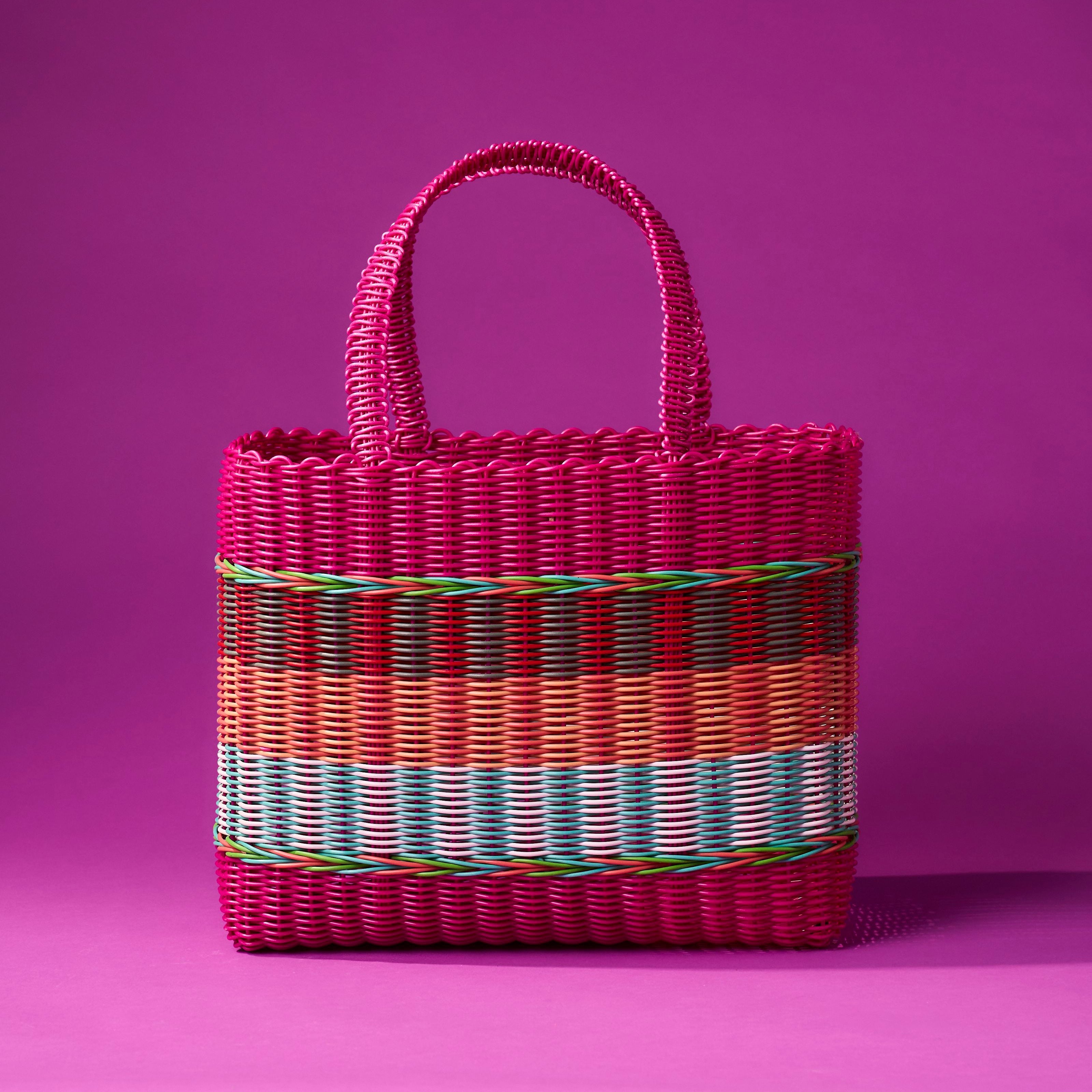 Each Mira bag is individually handwoven in a remote village in Java from new plastic tubing made from recycled PET plastics.
