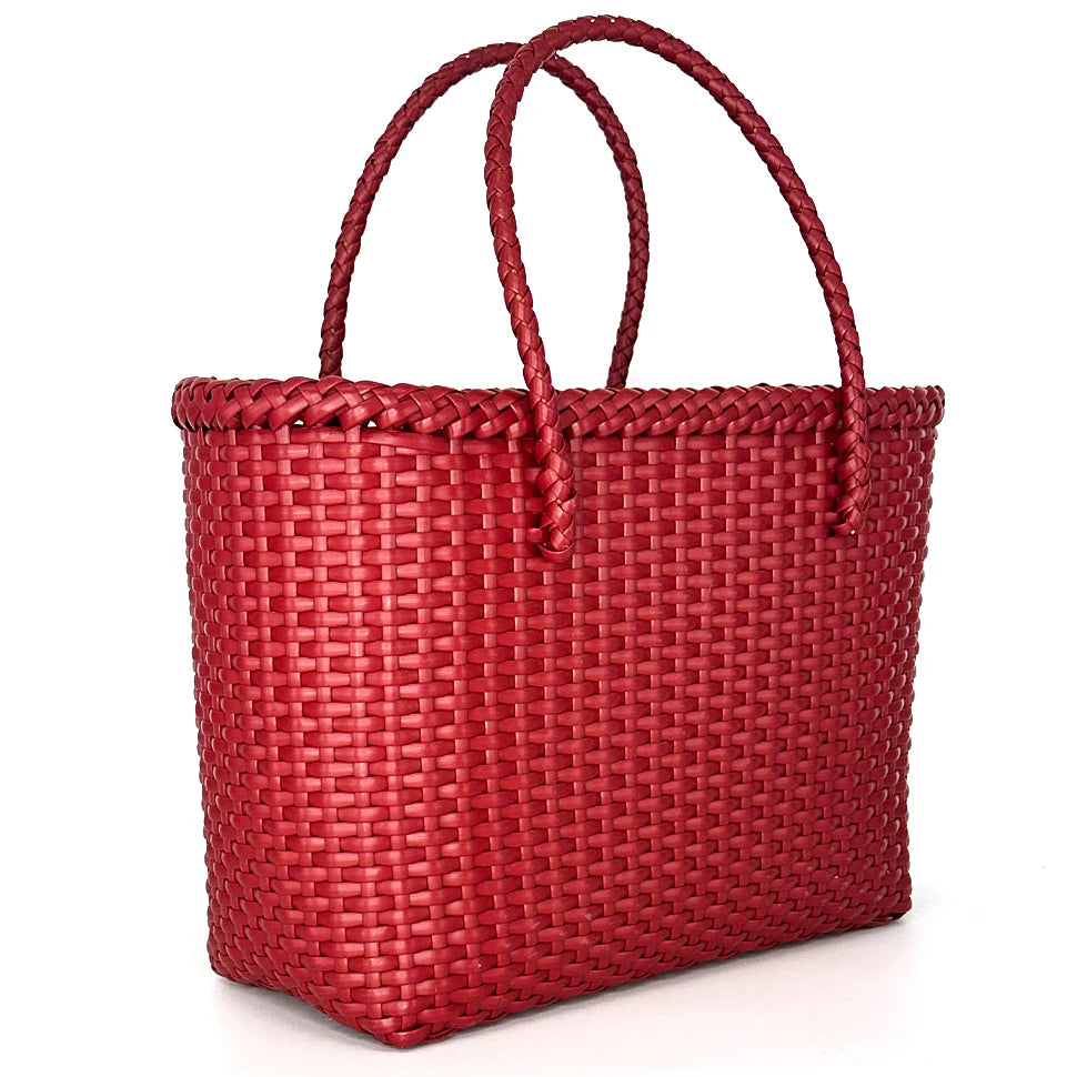 Mira is the fantastic new Pali range and project, expanding their support wider than Myanmar to a new remote village in Java. Bags are individually handwoven from new flat plastic strapping, with a smooth velvety finish, made from recycled PET plastics.