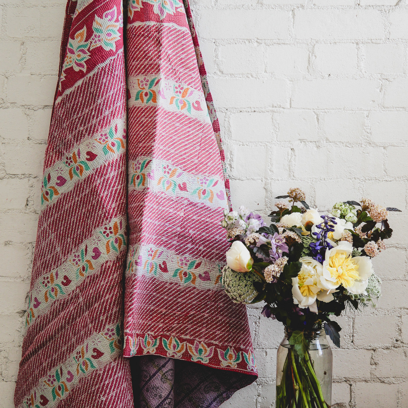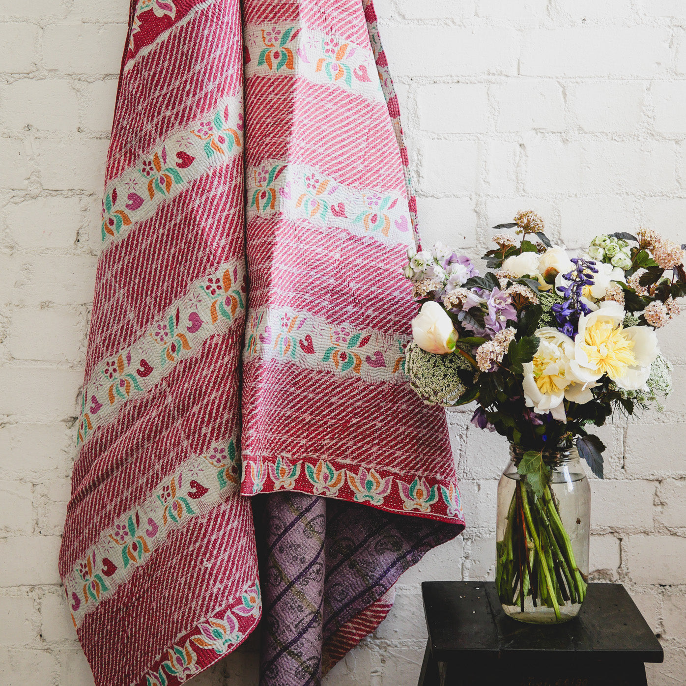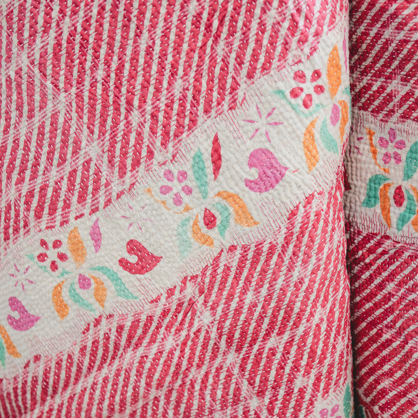 Beautiful vintage reversible Indian kantha quilt in perfectly imperfect condition.