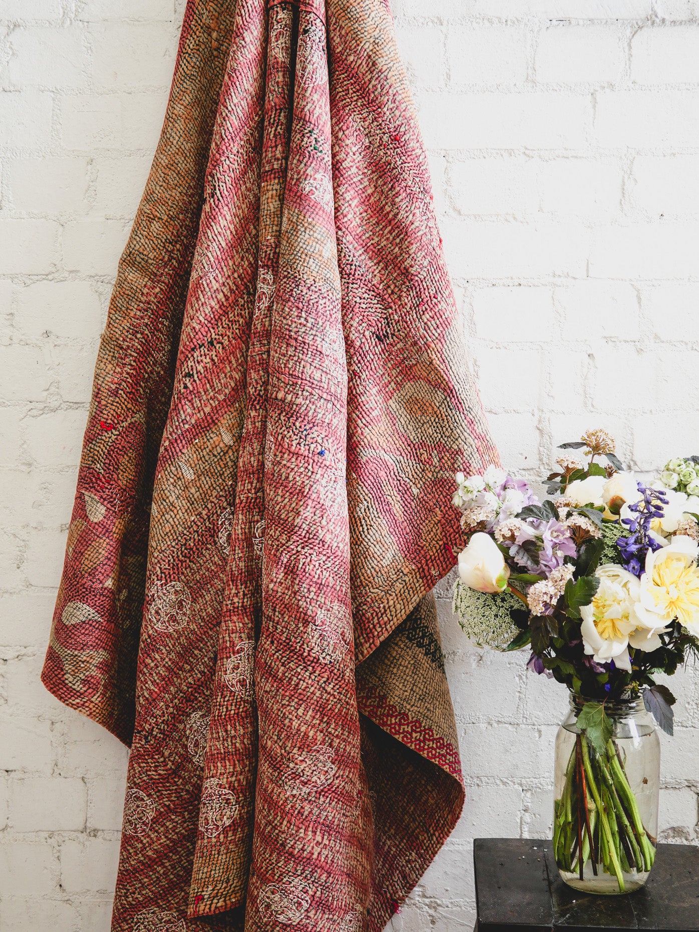 Beautiful vintage reversible Indian kantha quilt in perfectly imperfect condition.