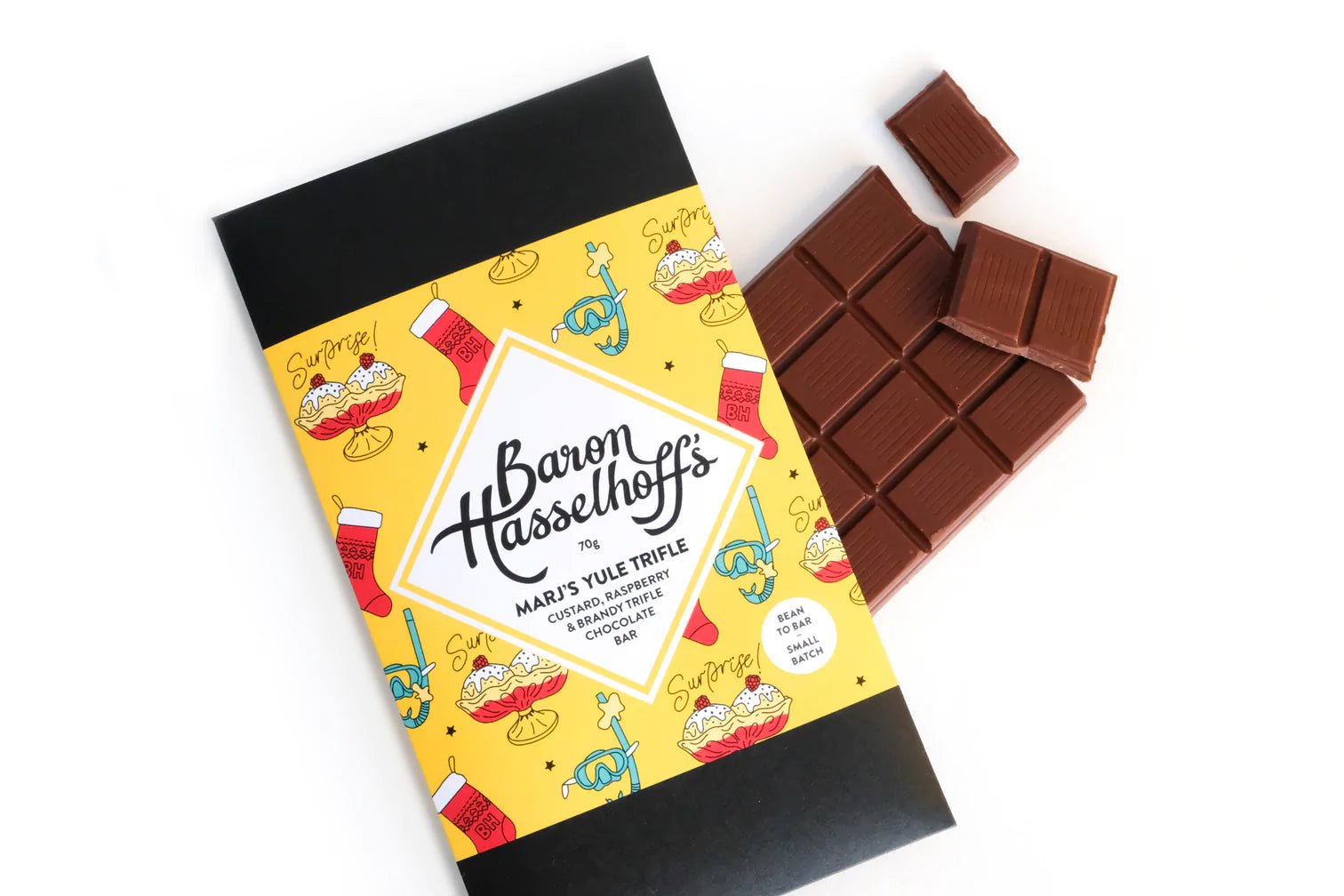 Baron Hasselhoff’s | Marj's Yule Trifle | Custard, Raspberry & Brandy Trifle Chocolate Bar