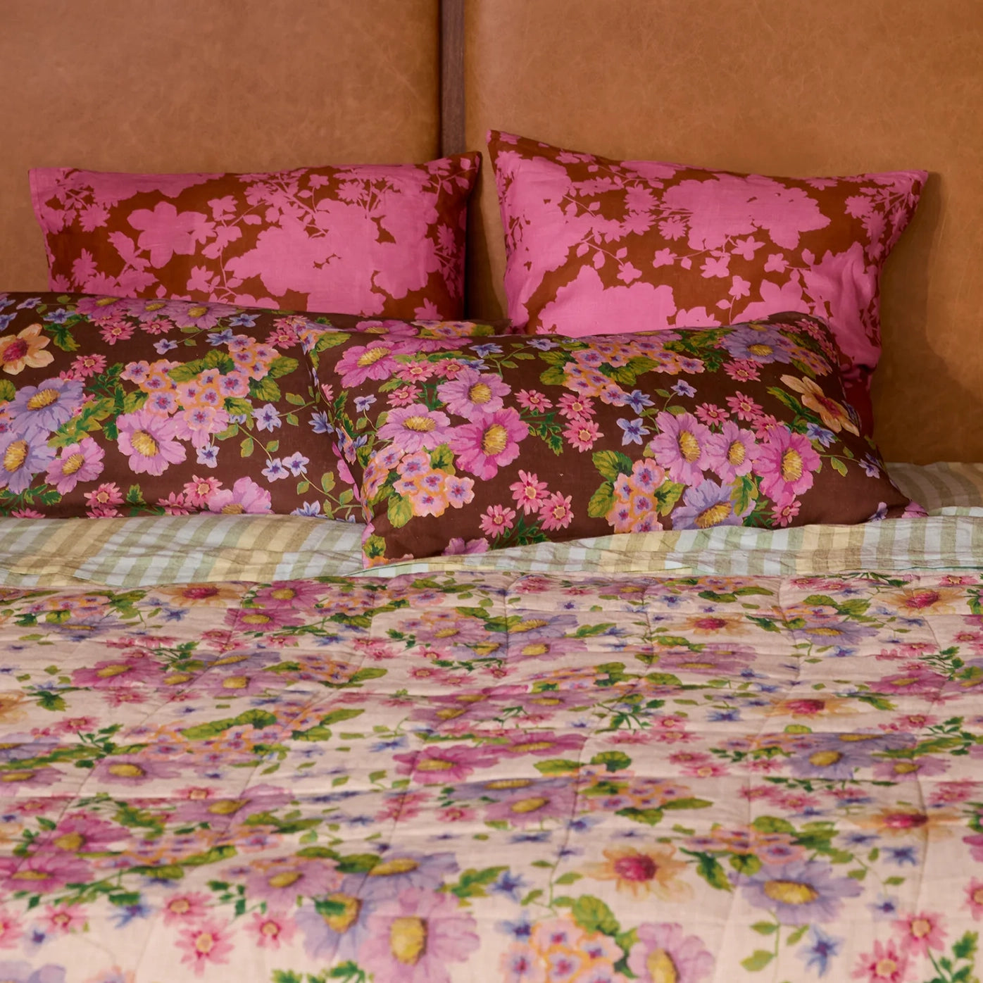 A confident botanical in pink and tan brings bold, vintage-inspired detail to your bedding. These linen European pillowcases are striking and full of personality, a statement layer.
