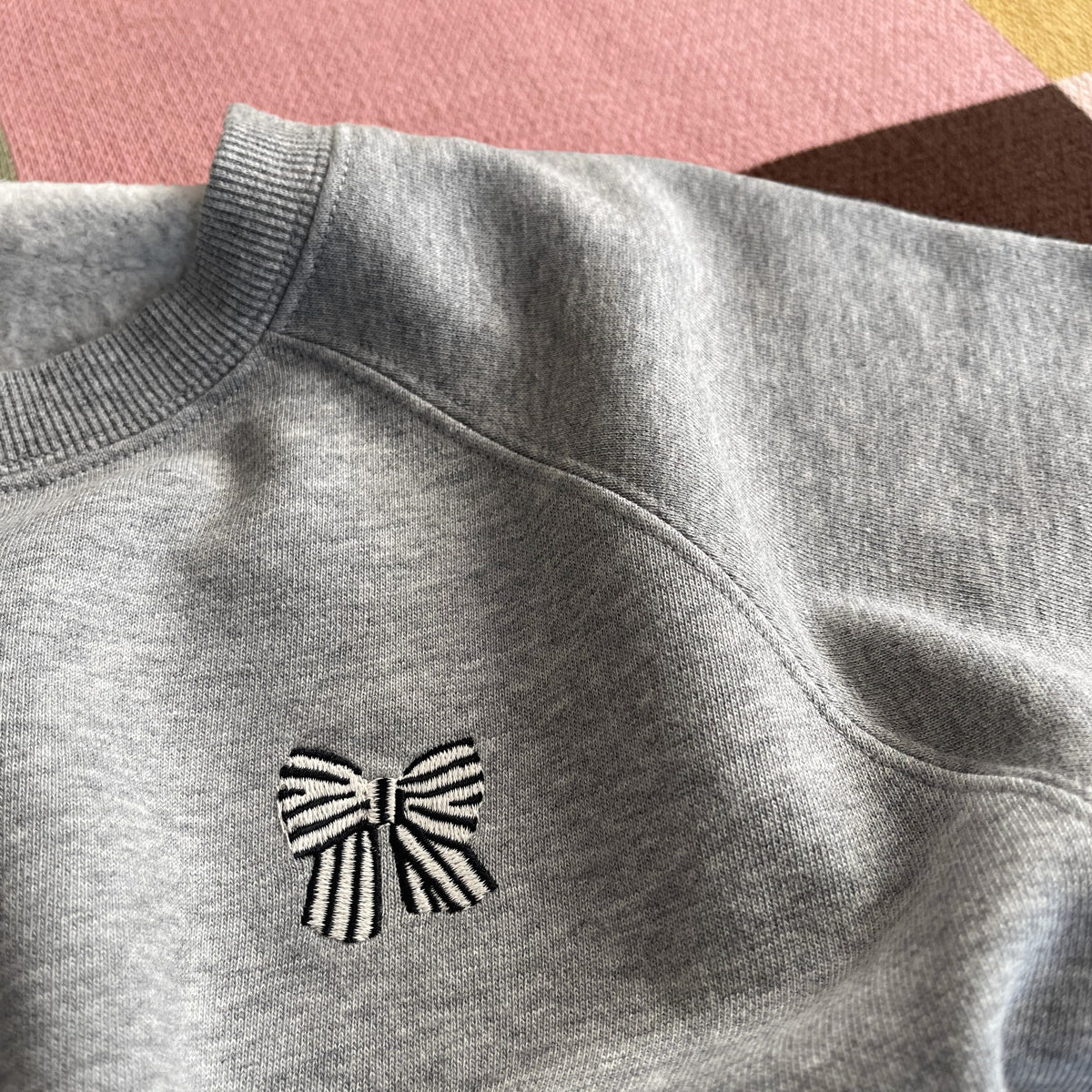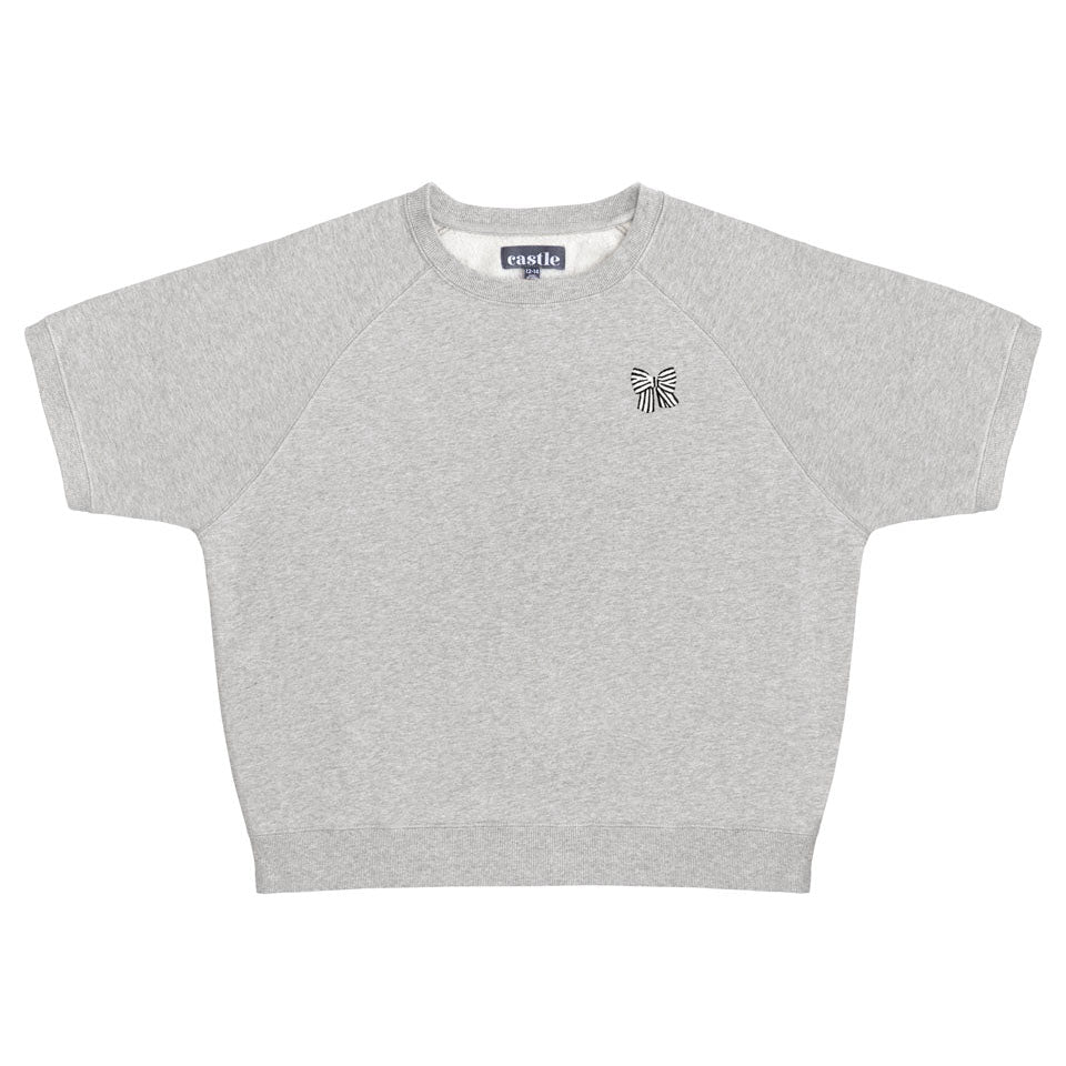 RIBBON embroidered grey marle cotton fleece lined short sleeve sweater