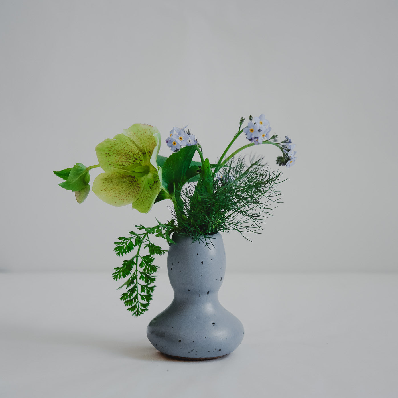 One of a kind stoneware, misty blue glaze with volcanic sand.