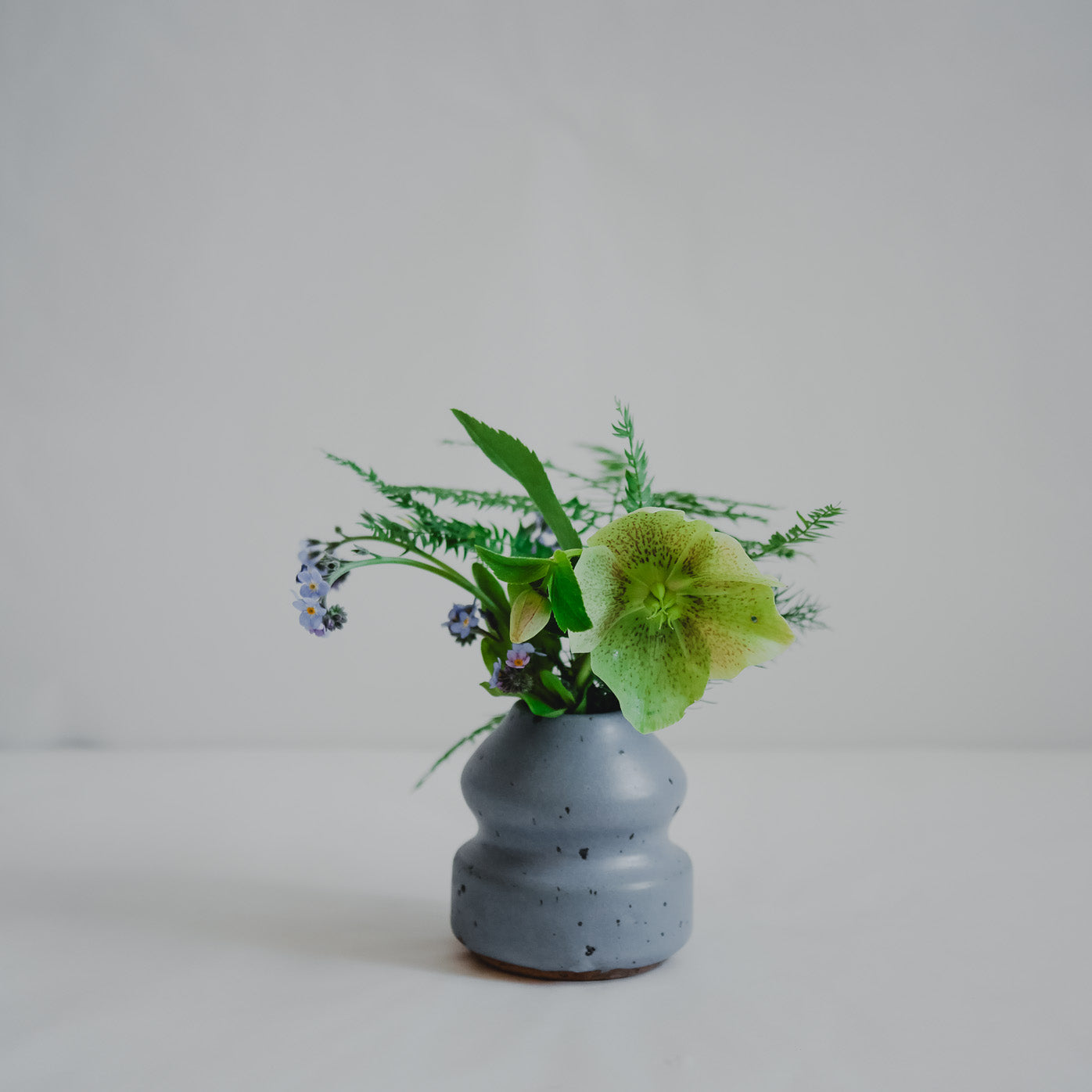 One of a kind stoneware, misty blue coloured matte glaze with volcanic sand.