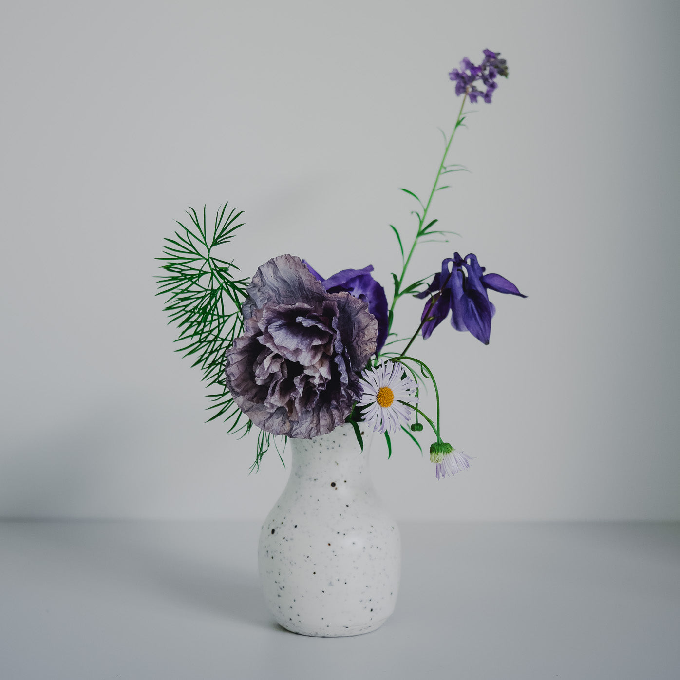One of a kind stoneware, chalk white matte glaze with volcanic sand.