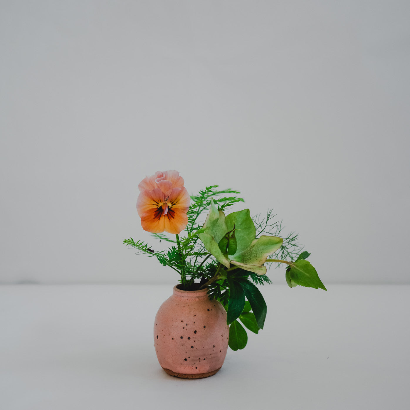 One of a kind stoneware, peach coloured matte glaze with volcanic sand.