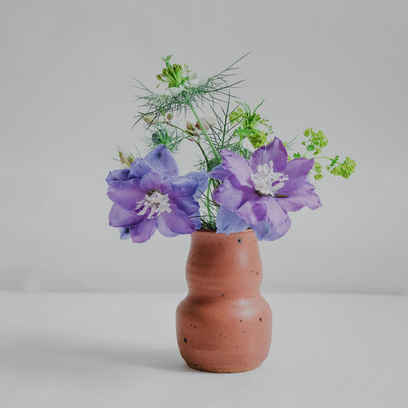 One of a kind stoneware, terracotta speckle coloured matte glaze with volcanic sand.