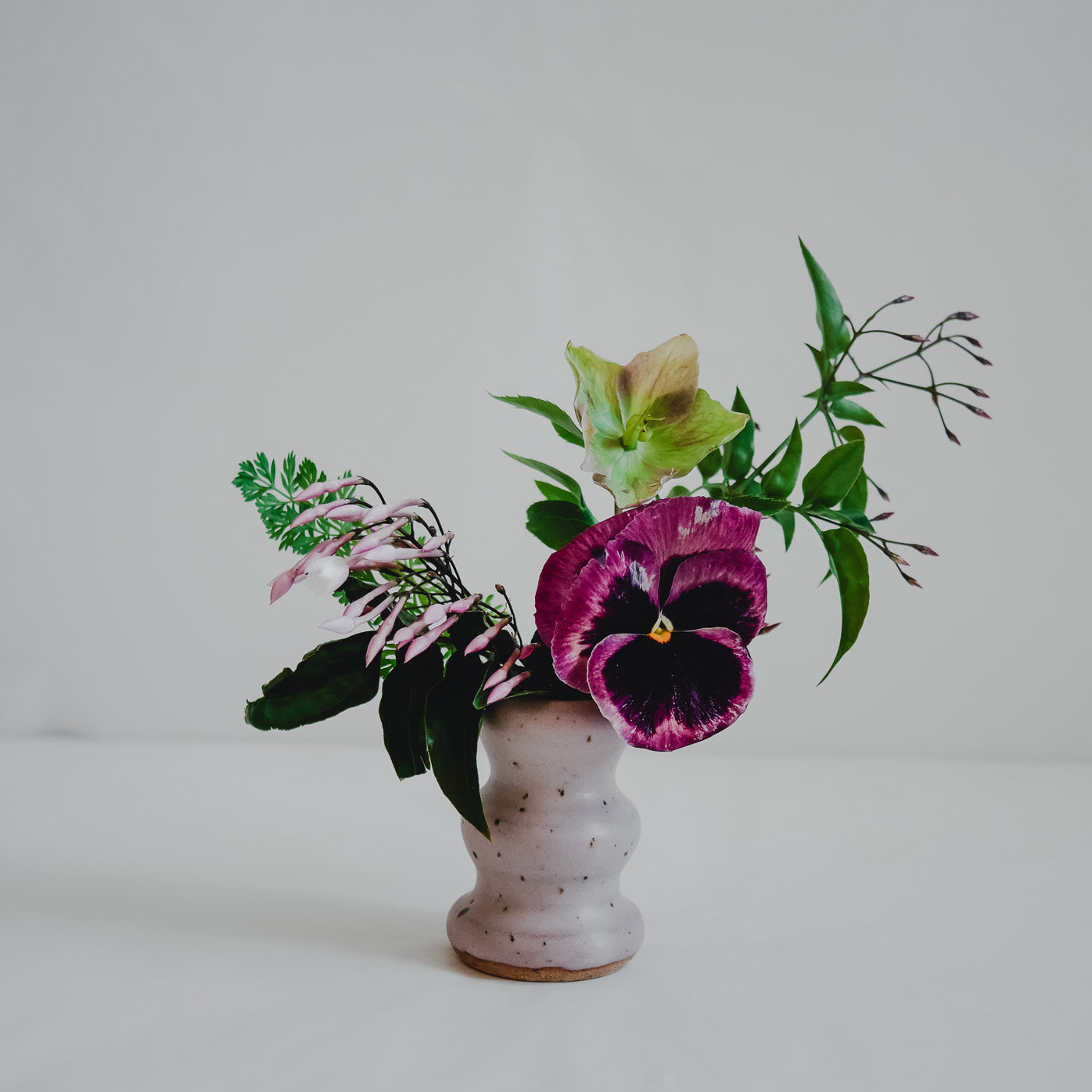 One of a kind stoneware, pale rose coloured matte glaze with volcanic sand.