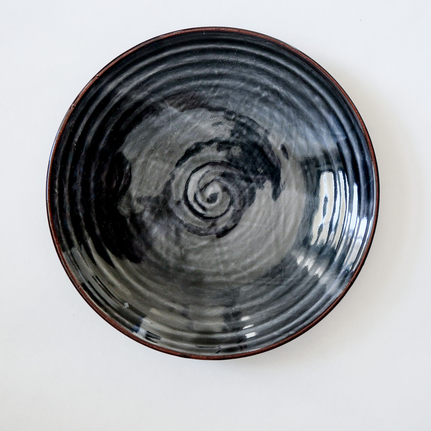 The most beautiful side plate in a licorice hand-painted glaze. All food looks & tastes better on a Katherine Smyth plate. Not just for cakes obviously. Equally beautiful with cheese and crackers. Even a bread roll, with a fresh salad or soup in one of Katherine's bowls.
