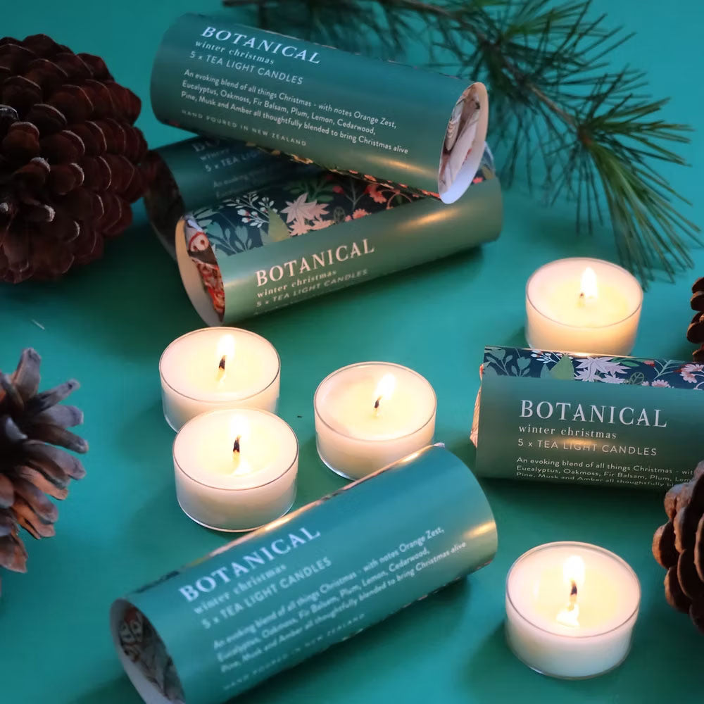 Beautiful new seasonal Christmas-scented tea light candles from Botanical.