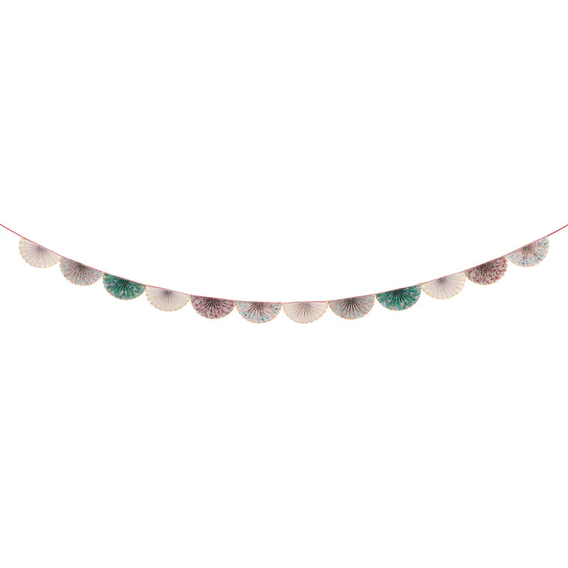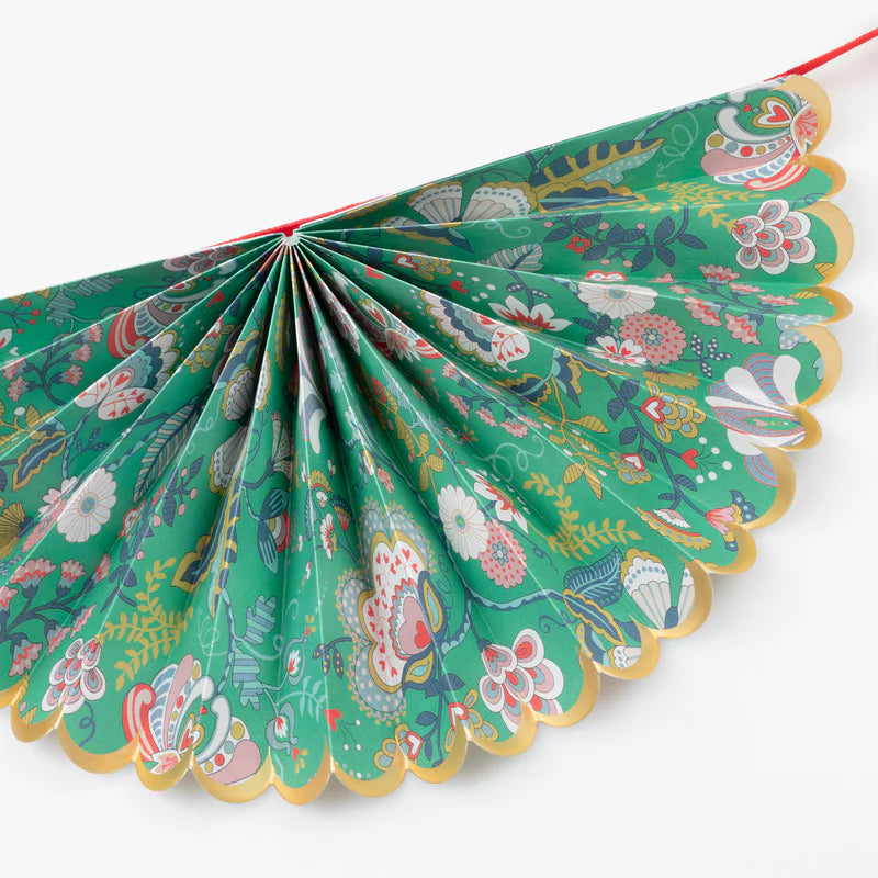 Meri Meri have collaborated with Liberty to bring a touch of elegance to your Christmas decor. This stylish scalloped paper fan garland, with Liberty prints in joyful festive hues, and pale matte gold foil accents, blends charm with sophistication. Featuring a luxurious red velvet ribbon, it's ready to drape effortlessly across your mantel, staircase, doorway, window or party table. When the celebrations are over, simply pack away, then reuse year after year.