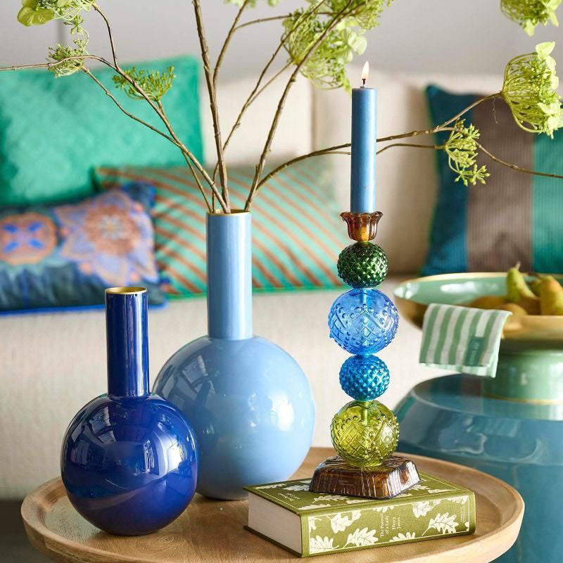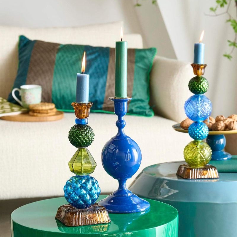 Pip Studio Glass Candle Holder | Bead Blue Green 23.5cm