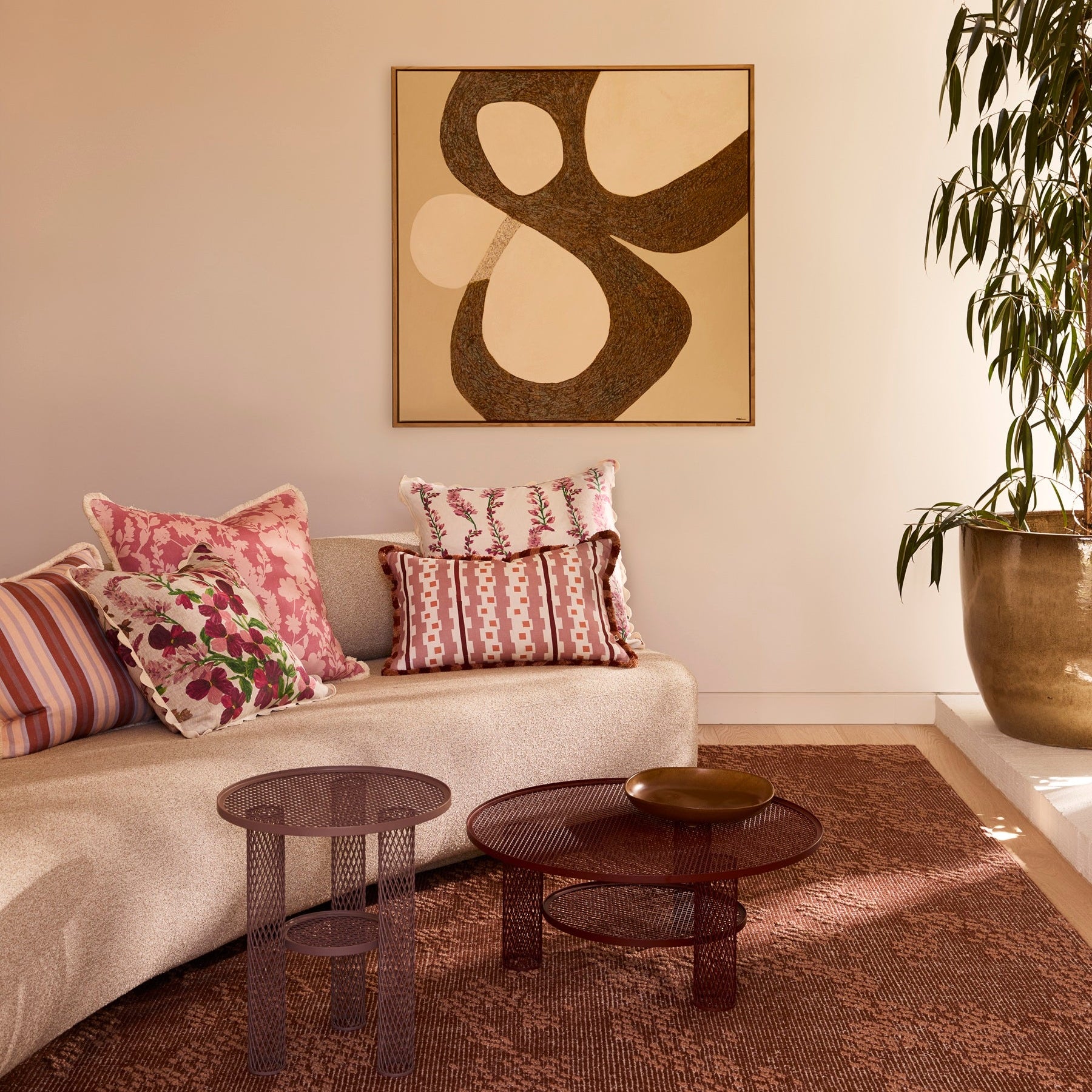 Mix yourself a little cushion cocktail. Yes! Mix your cushions up. Use fabrics with a variety of texture, colour & pattern. Layer, layer, layer & unify your patterns with a harmonising colour palette.