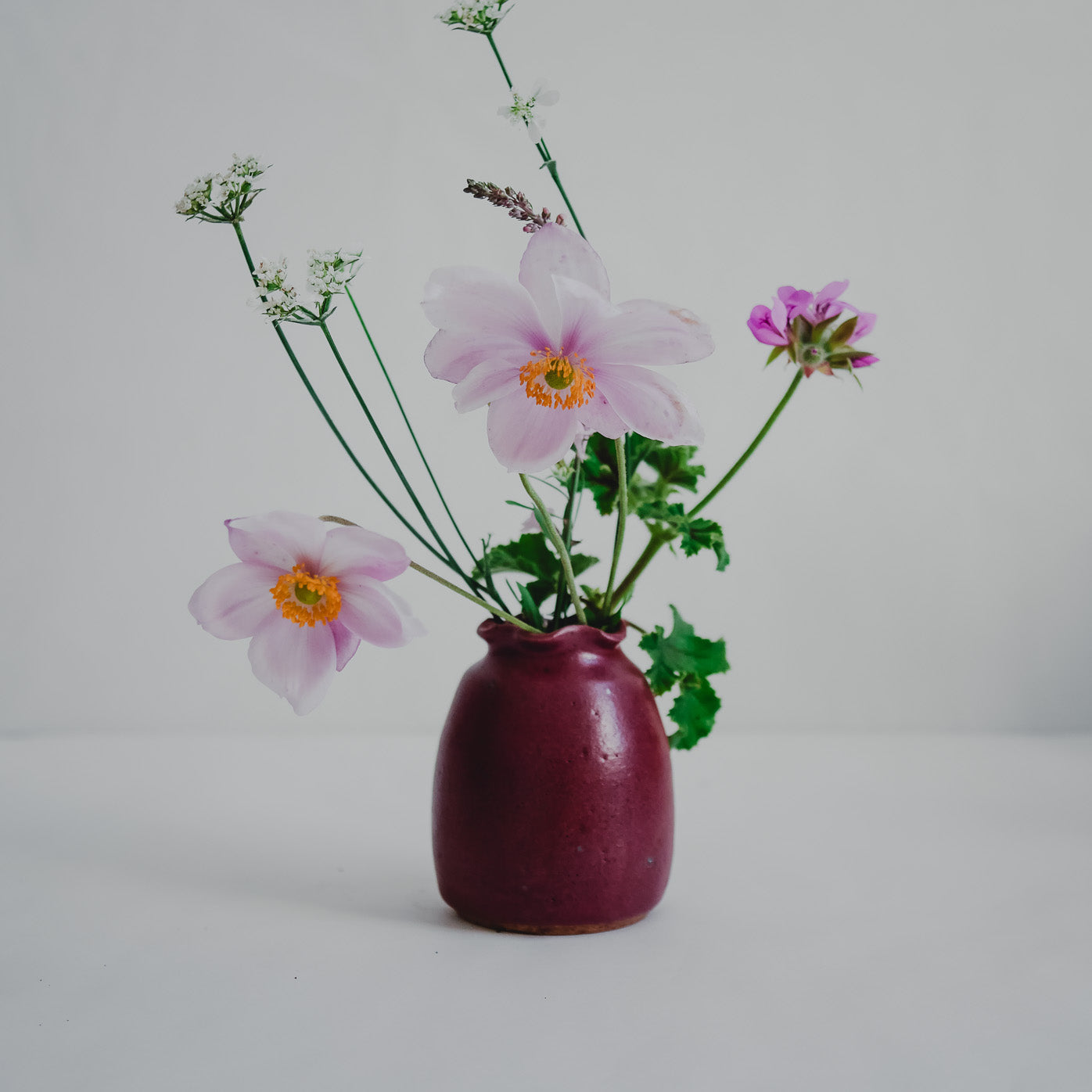 One of a kind stoneware, wine coloured matte glaze with volcanic sand.