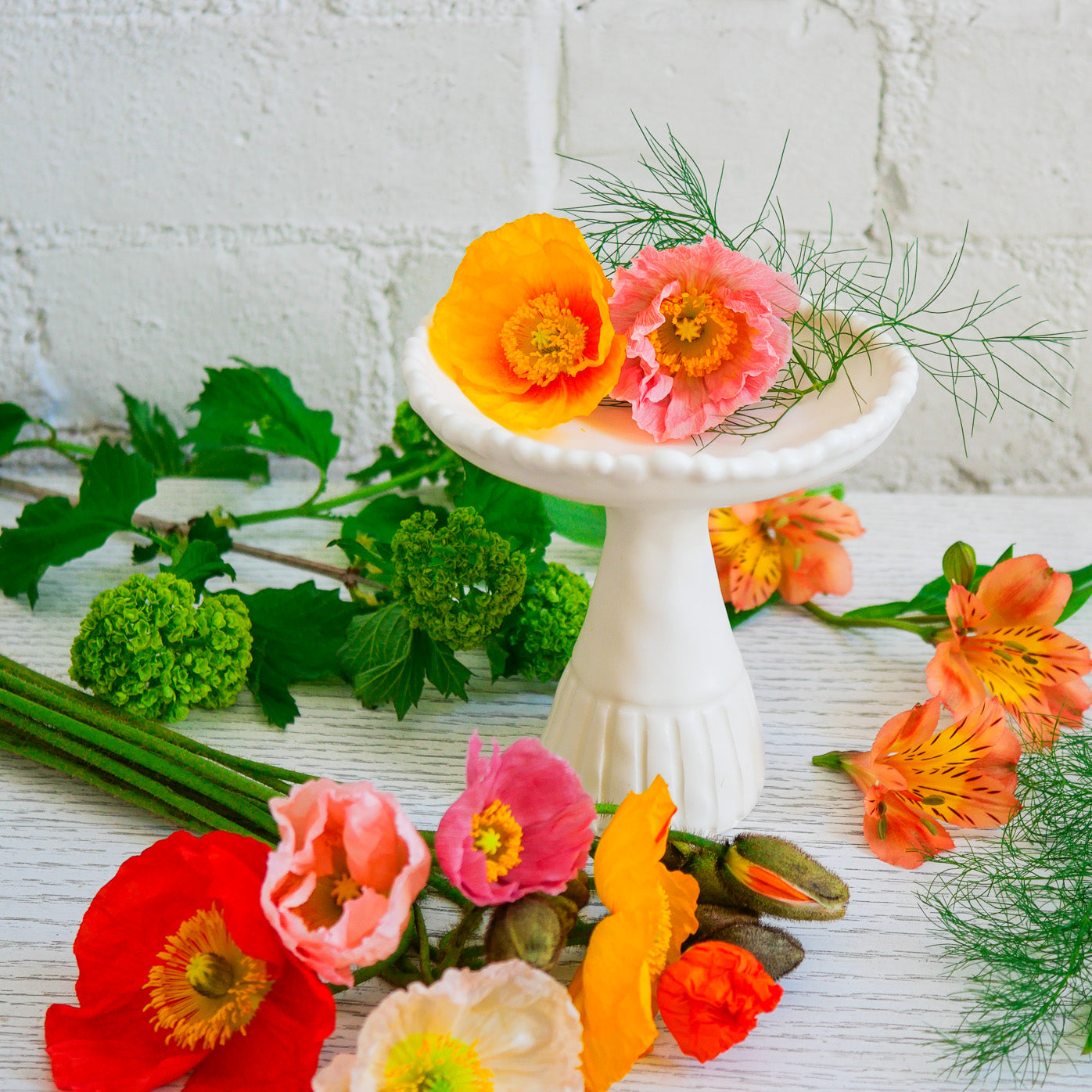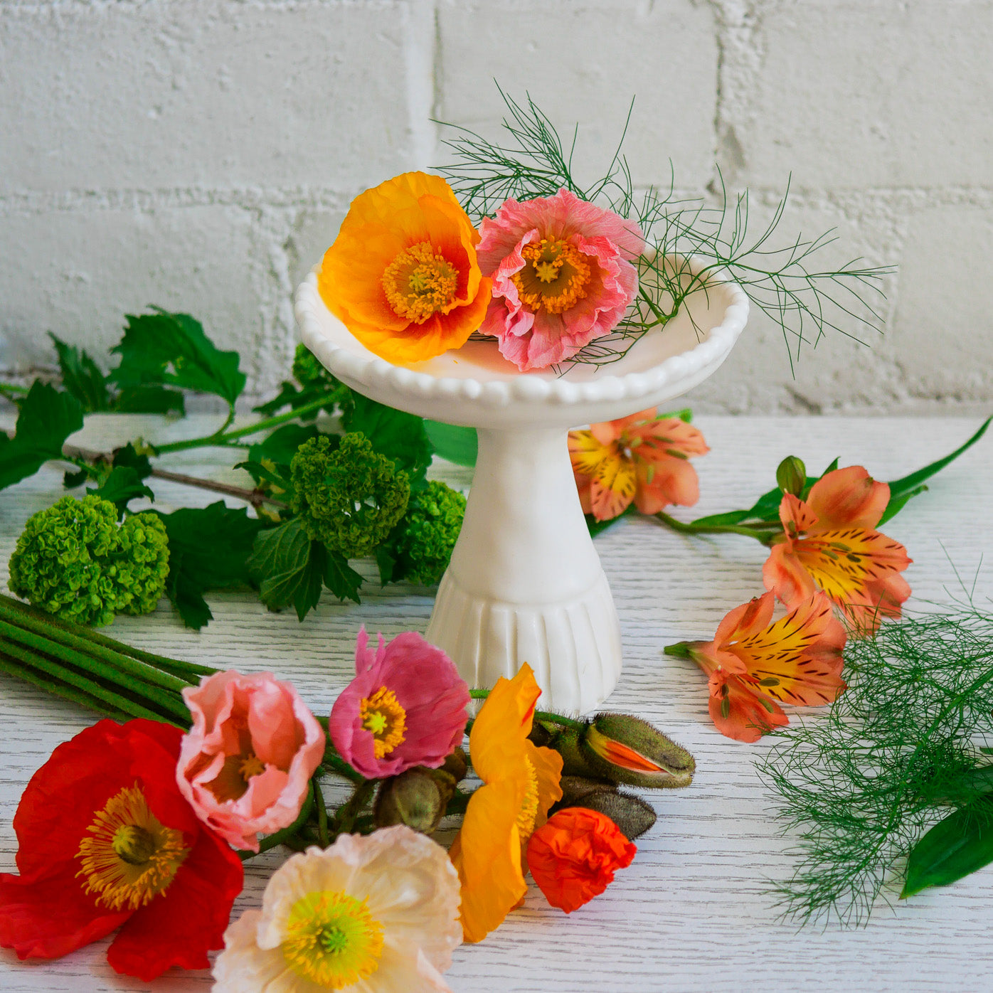 Hand sculpted, shapely elegant, classicly 'Pip Woods wonky' pure creamy white puffball pedestal dish