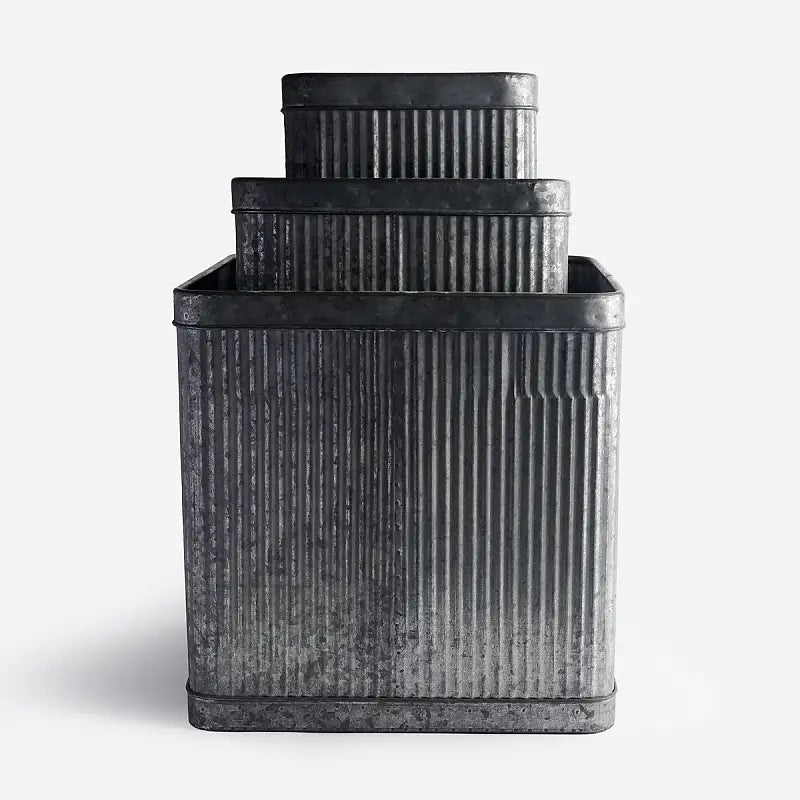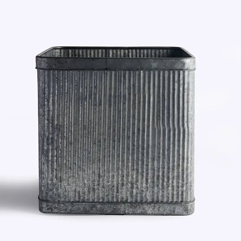 Inspired by the grandeur of 19th-century European estates, the Lowe fluted square container brings refined sophistication to any space. Finished in beautifully distressed vintage zinc, it comes in three sizes and offers timeless elegance and versatility for the home, garden, balcony, or as a stylish storage solution.