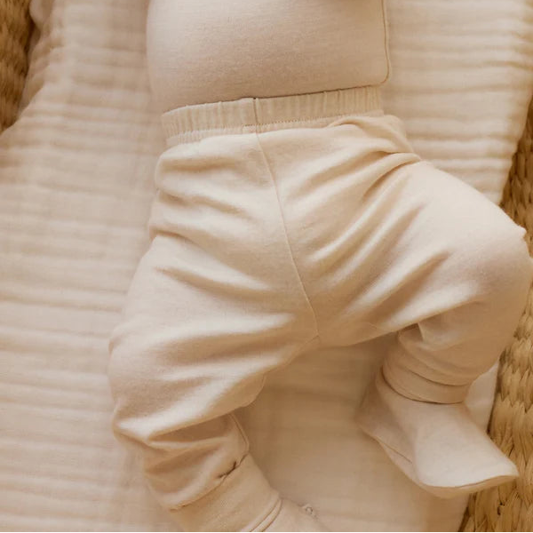 A beautifully soft essential for your little one, the Merino Legging in Natural is thoughtfully designed in a gentle cream tone with a comfortable elastic waistband and a simple, timeless silhouette. Made from 100% superfine merino wool, these leggings offer natural warmth and breathability, making them perfect for babies and toddlers in all seasons.