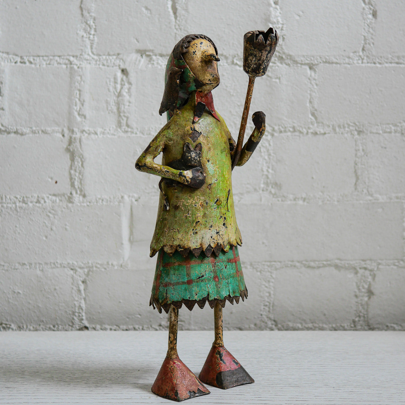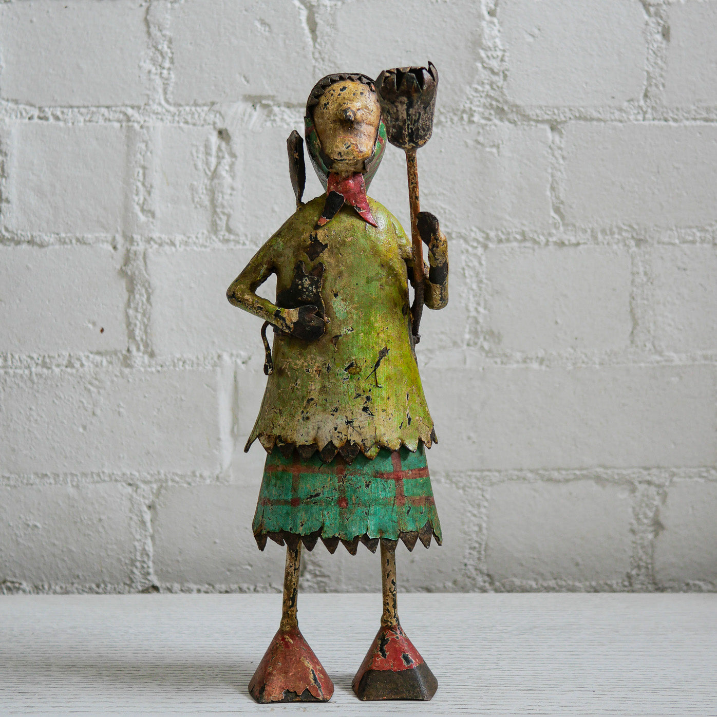 Each friend is a unique, original vintage piece, handmade from iron, complete with the bumps and charms and paint chips and occasional limp, and all the general signs of an old piece that has had a previous well-lived life. No two are alike even though some are at first glance, similar.