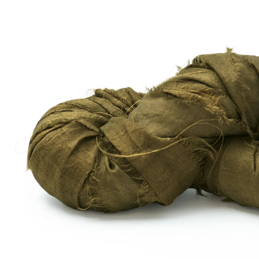 Luxurious recycled sari silk ribbon is a fibre artist's dream. Hand-dyed in small batches, what was once waste has been repurposed into a romantic and versatile ribbon.
