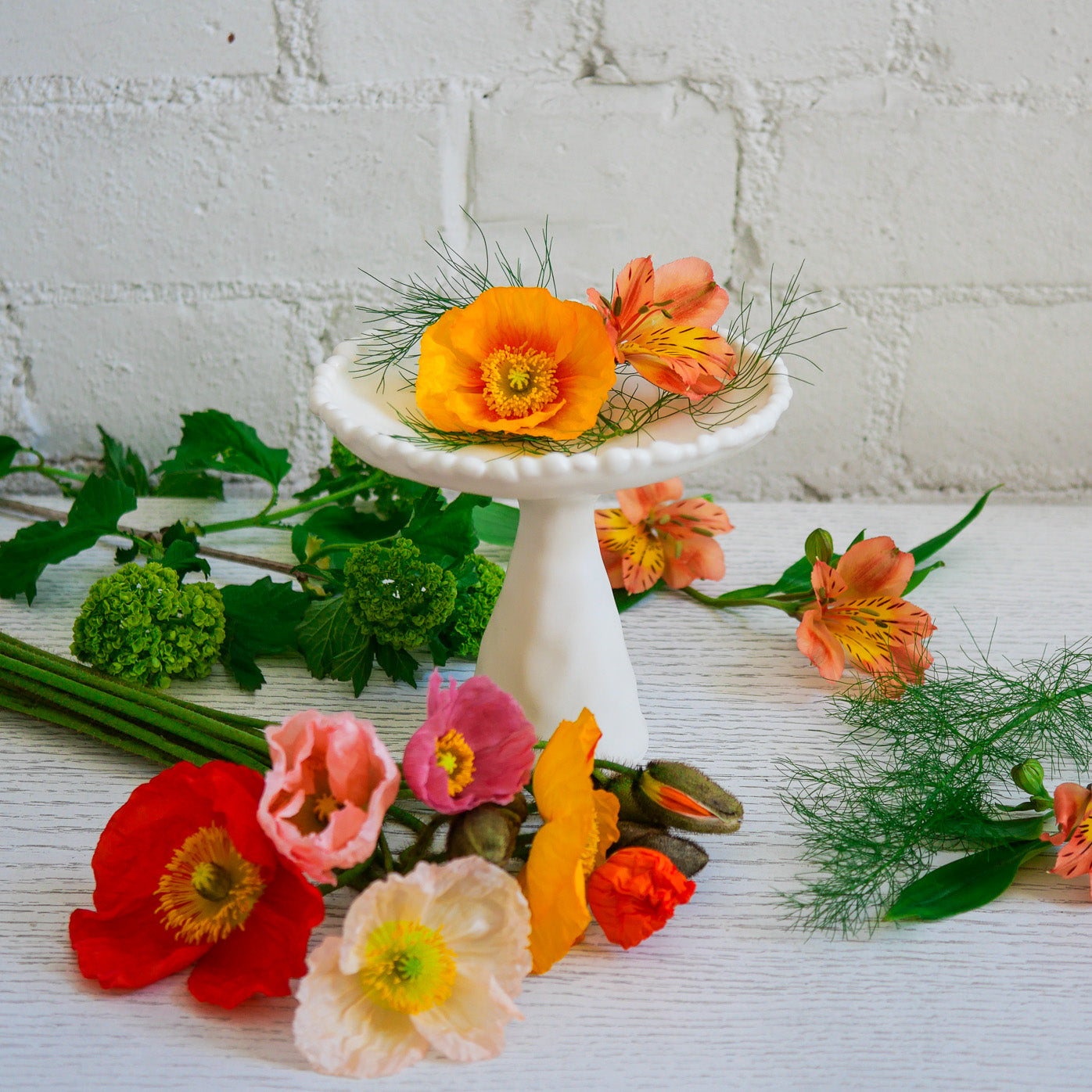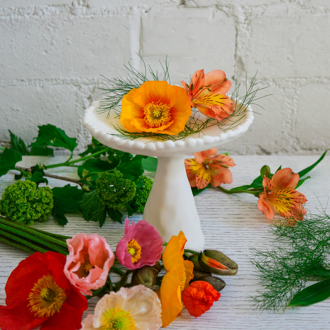 Hand sculpted, shapely elegant, classicly 'Pip Woods wonky' pure creamy white puffball pedestal dish