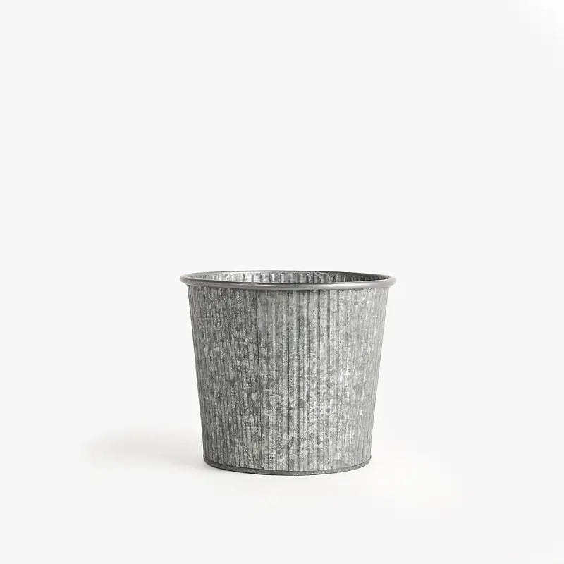 The Garnier ribbed tin planter brings timeless elegance and classic sophistication to any home. With its beautifully distressed vintage zinc finish, the Garnier collection offers a refined touch of style and is available in five sizes.