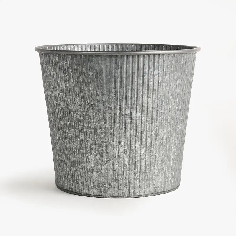 The Garnier ribbed tin planter brings timeless elegance and classic sophistication to any home. With its beautifully distressed vintage zinc finish, the Garnier collection offers a refined touch of style and is available in five sizes.