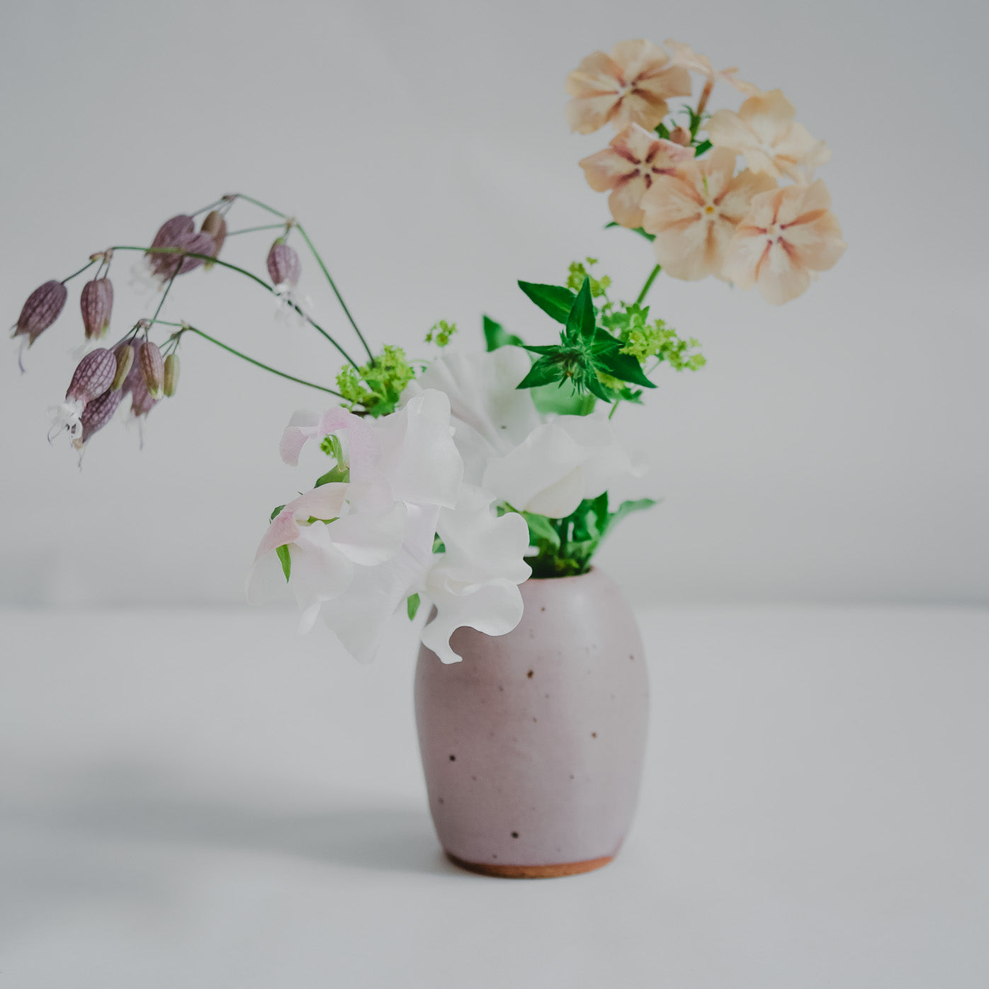 One of a kind stoneware, pale rose glaze with volcanic sand.