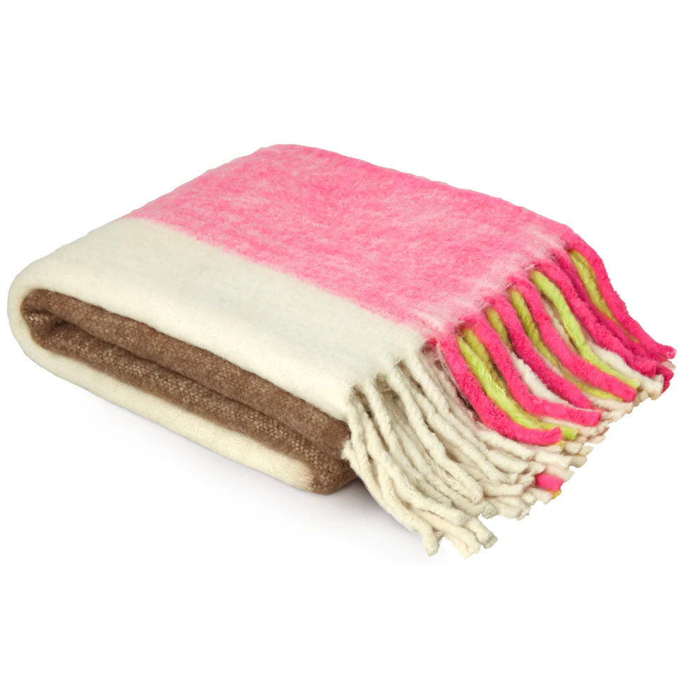 Mohair wool blend 4 colour blanket with 20cm tassels