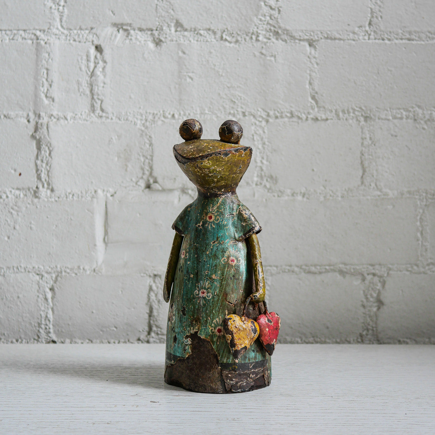 Vintage Metal Friend | 32. Blue Flower Frog With Hearts
