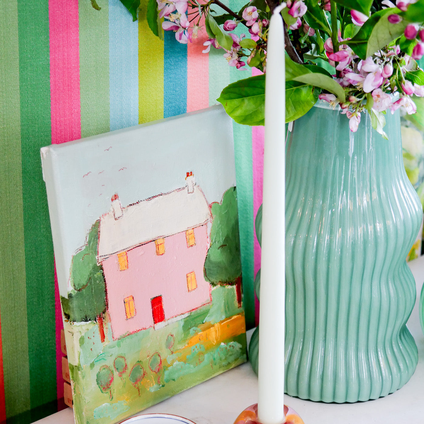 We are very excited to introduce Wellington-based artist Alecia Koenigsberger to our Small Acorns family. Alecia has painted this collection of flowers and vases and cottages especially for us. They reflect her love of colour and shape, and she loves the idea of her work making a space happy. Happy indeed.