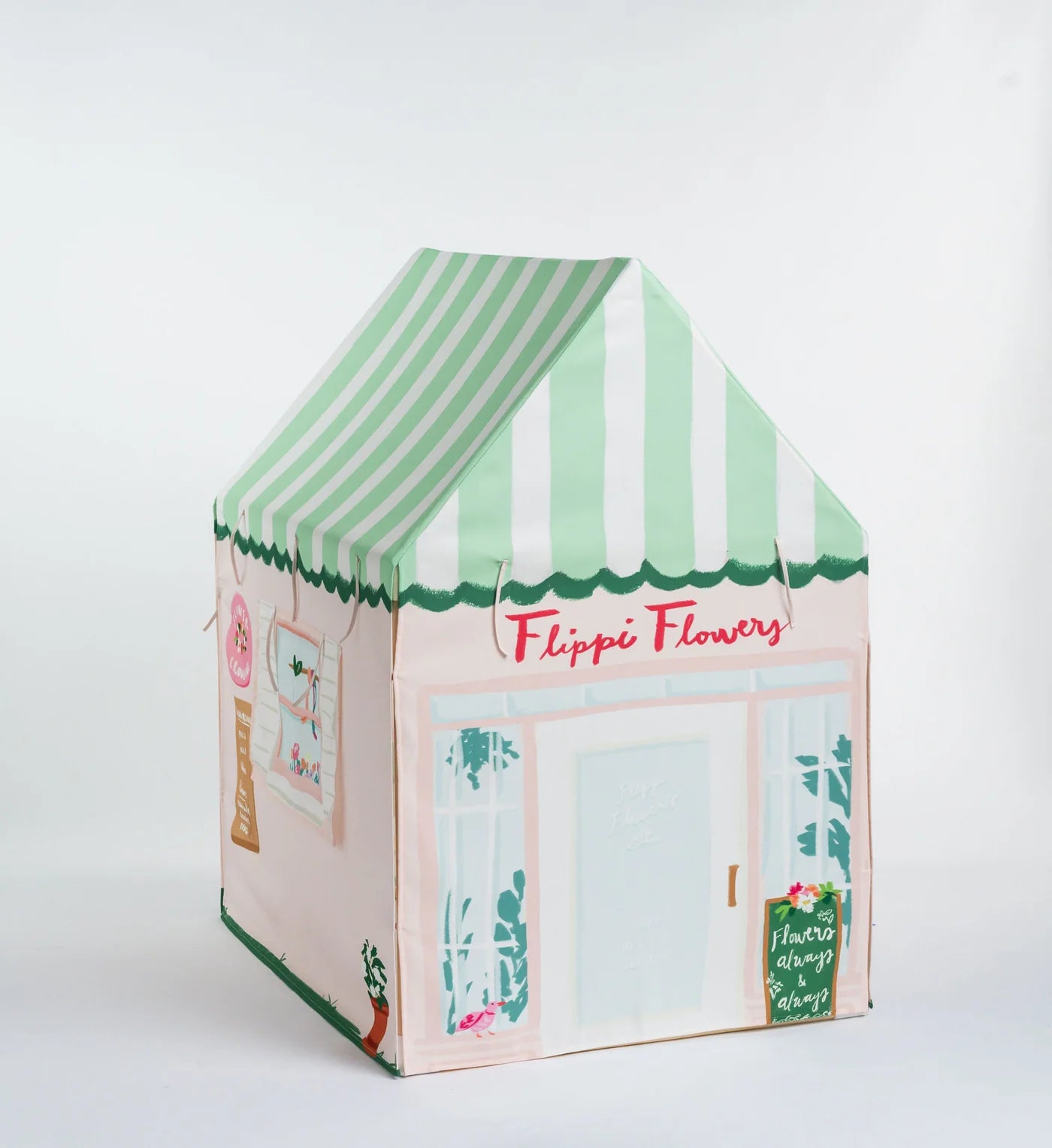 Stop and smell the roses at Flippi Flower Shop Playhouse tent. The sweetest little florist that blooms with floral ways to engage in pretend play. Bouquets, flower crowns and Fleur, the squirrel await.
