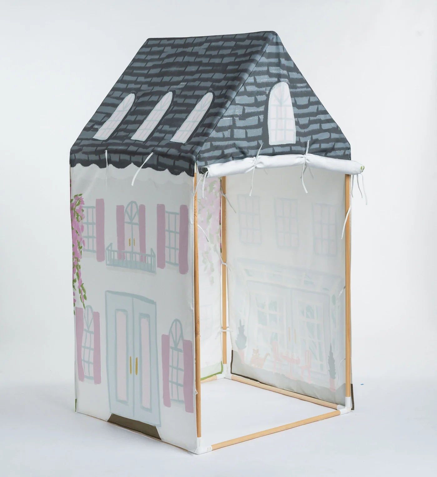 Set the scene for sweet tea parties & creative role play in the Flippi kids Terrace tent. Beautifully & uniquely designed with the charm of a traditional Terrace house, this tall children's tent is the perfect play space & backdrop for those who appreciate a soft and pretty aesthetic.