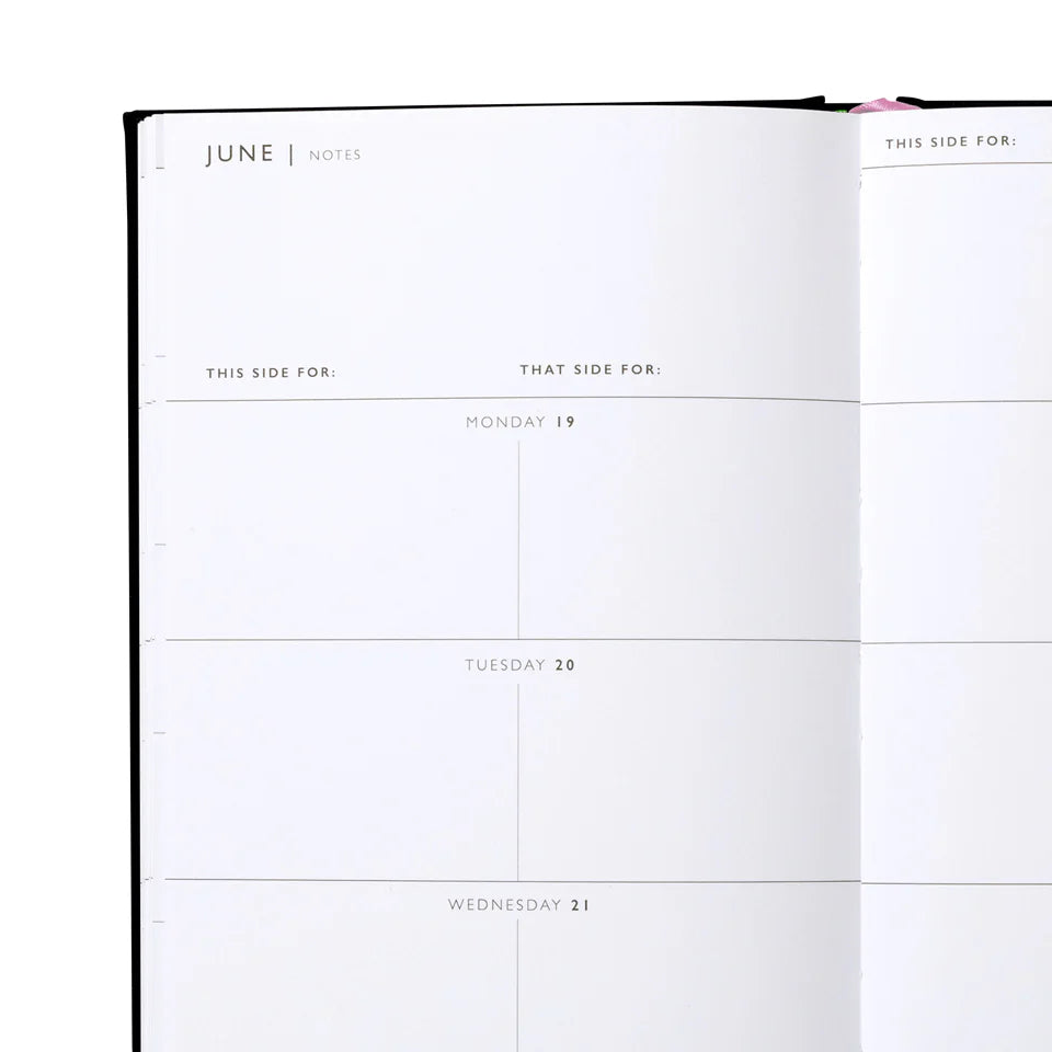 Weekly Layout This side for, that side for layout. Every day has the same space allocated including weekends!